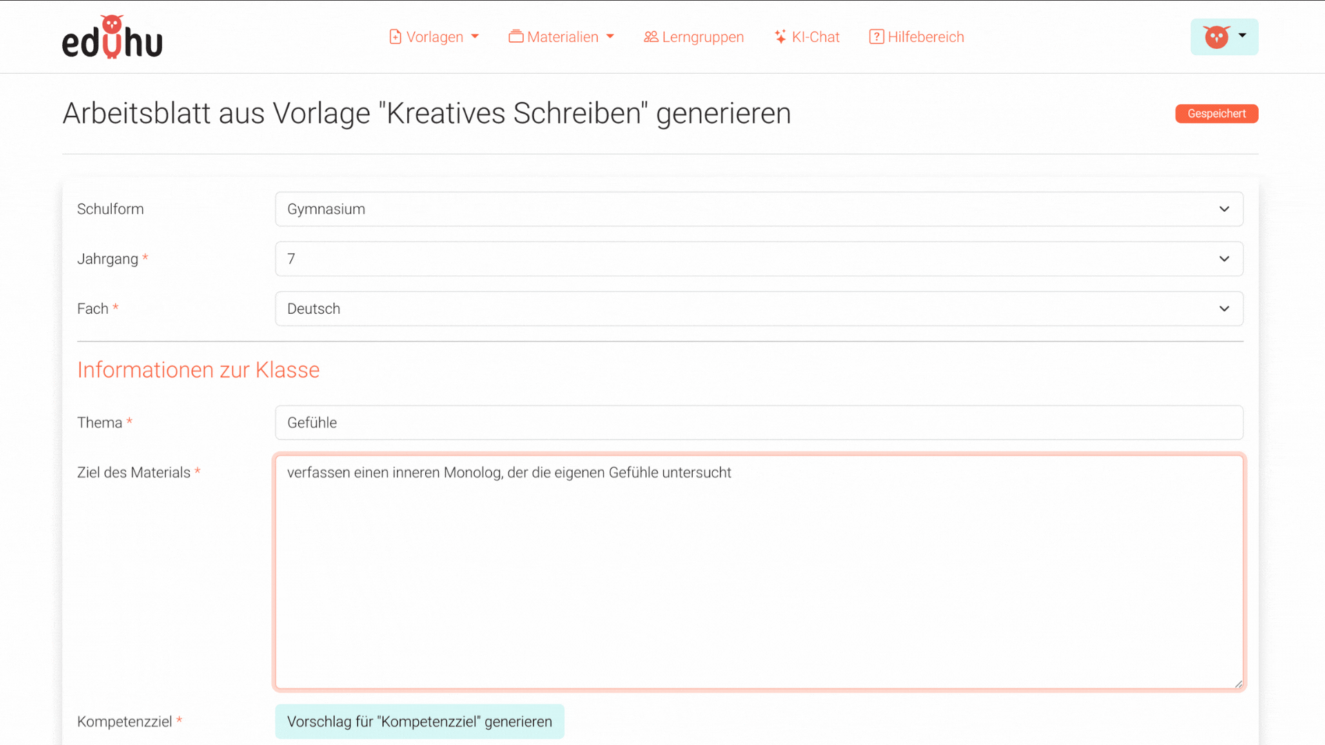 Mit dem Kompetenzzielgenerator kannst du die Charakteristika deiner Lerngruppe auswählen, um maßgeschneiderte Lernziele und Materialien zu erstellen. Dieses Feature ermöglicht eine gezielte und effektive Umsetzung, die den individuellen Bedürfnissen der Lernenden gerecht wird.